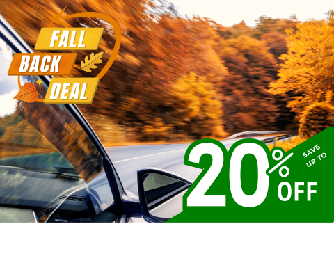 Book a midsize SUV rental to pick up between Nov 28 to December 18 and save UP TO 20%! This deal is available when you use the code FALLBACKIF20! This deal is valid for IFAR vehicle classes! Choose Pay Now to maximize your savings!