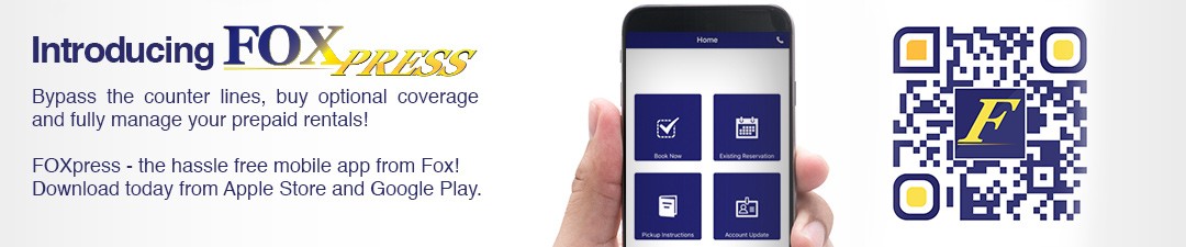 All standard Fox Rent A Car payment rules and policies apply at pickup. See Location Policy pages for full details.