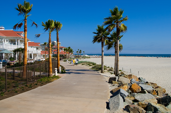 Listed by CNN travel as the 7th best beach in 2022, this scenic San Diego beach has something for everyone. Coronado Central Beach is the most popular Coronado beach, located right next to the Hotel del Coronado. Visitors can enjoy various activities at Coronado beach, including swimming, surfing, bike rentals, boogie boarding, and much more. Want a beach you can bring your dog to? North Beach (aka Cornado Dog Beach) is leash-free and fun for humans and dogs! To read more about the Coronado beaches, click here!