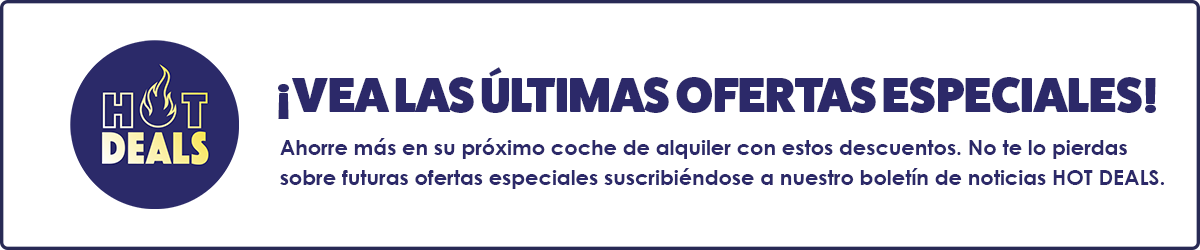 Le enviaremos nuestras últimas, mejores y exclusivas ofertas de alquiler de automóviles no publicadas a los miembros de nuestro boletín. ¡Regístrate hoy!